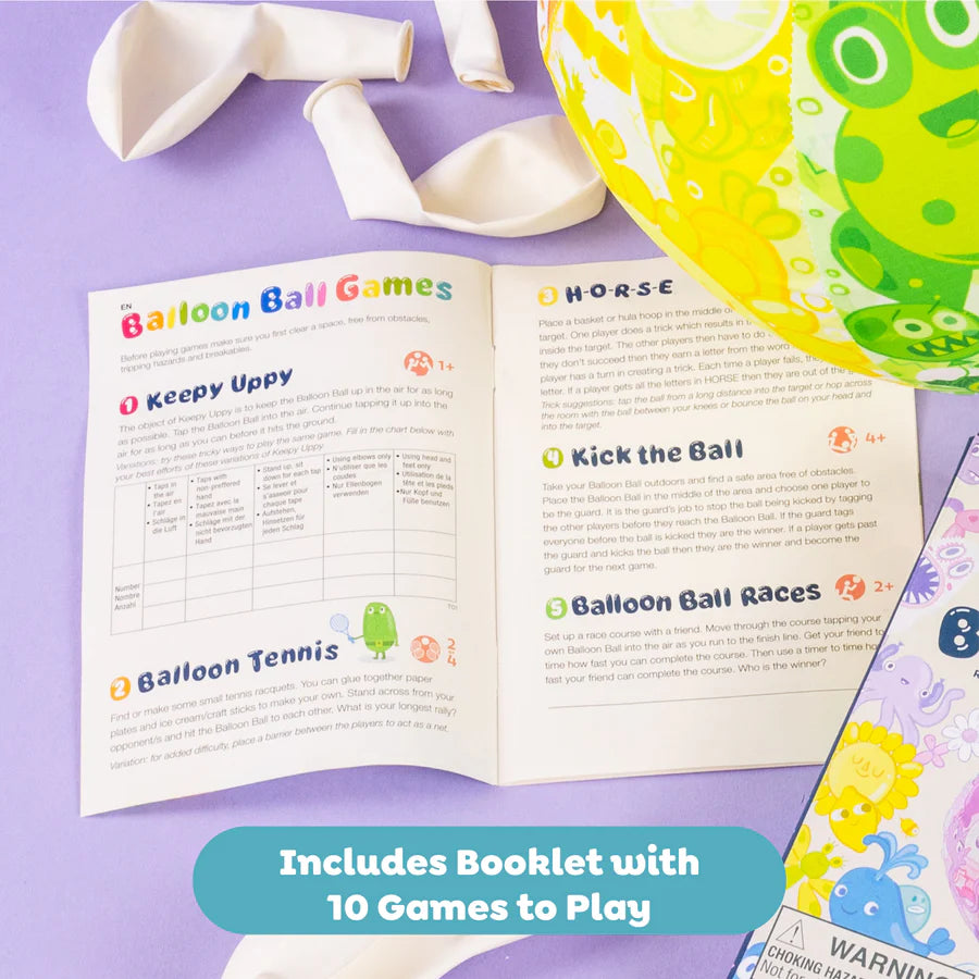 Simply insert the balloon into the vibrant fabric cover and inflate as normal. The fabric protects the balloon from bursting, makes it easier to catch, and provides some weight for predictable flight. The Balloon Ball cover is endlessly reusable, creating the perfect travel toy.