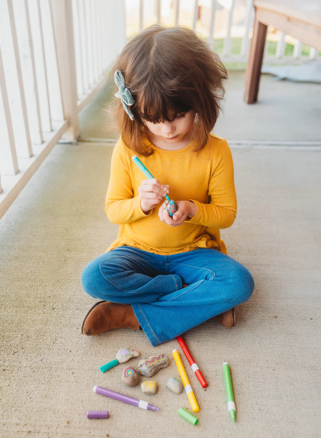 Unleash creativity with our 24-Pack Washable Acrylic Markers, the first-ever acrylic markers designed for kids (Kindergarten and up!). Perfect for young artists and beginners, these markers deliver vibrant, high-quality results on a variety of surfaces, from paper to wood to rocks.