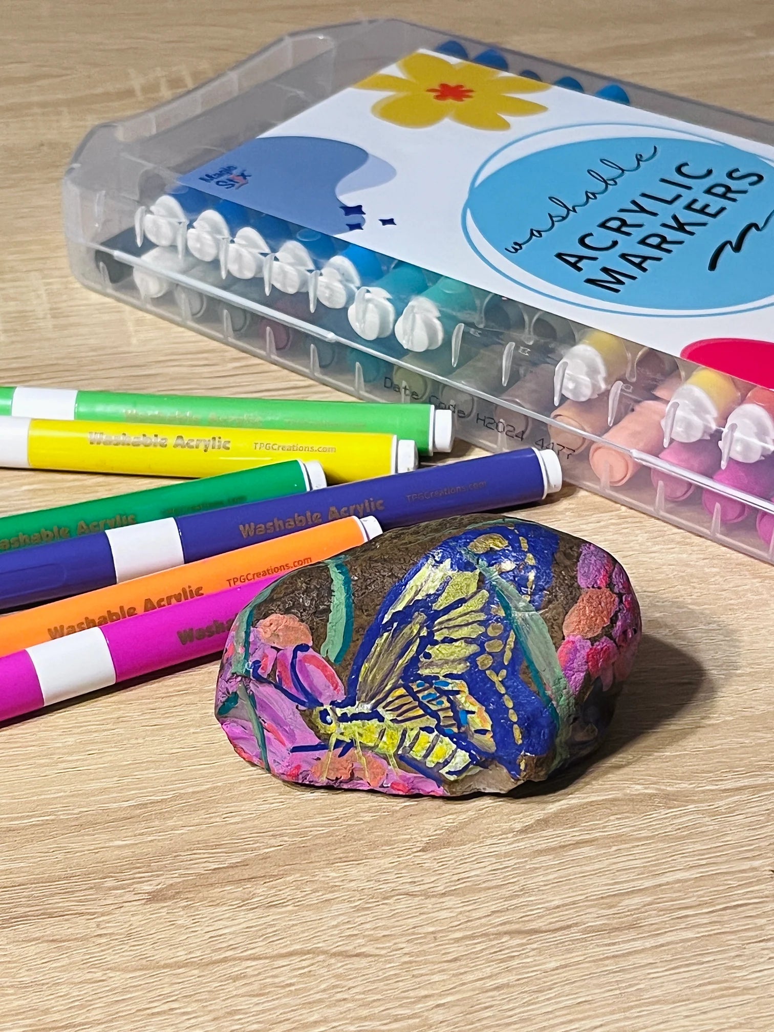 Make this summer shine with our new Washable Acrylic Markers—your go-to tool for bold, vibrant art on wood, rocks, shells, and more! These quick-drying markers glide smoothly on all kinds of surfaces, making outdoor art projects fun and mess-free. Perfect for camp crafts, summer classrooms, and creative kids on the go. Plus, they’re a great screen-free activity and a colorful gift that lasts all season long!