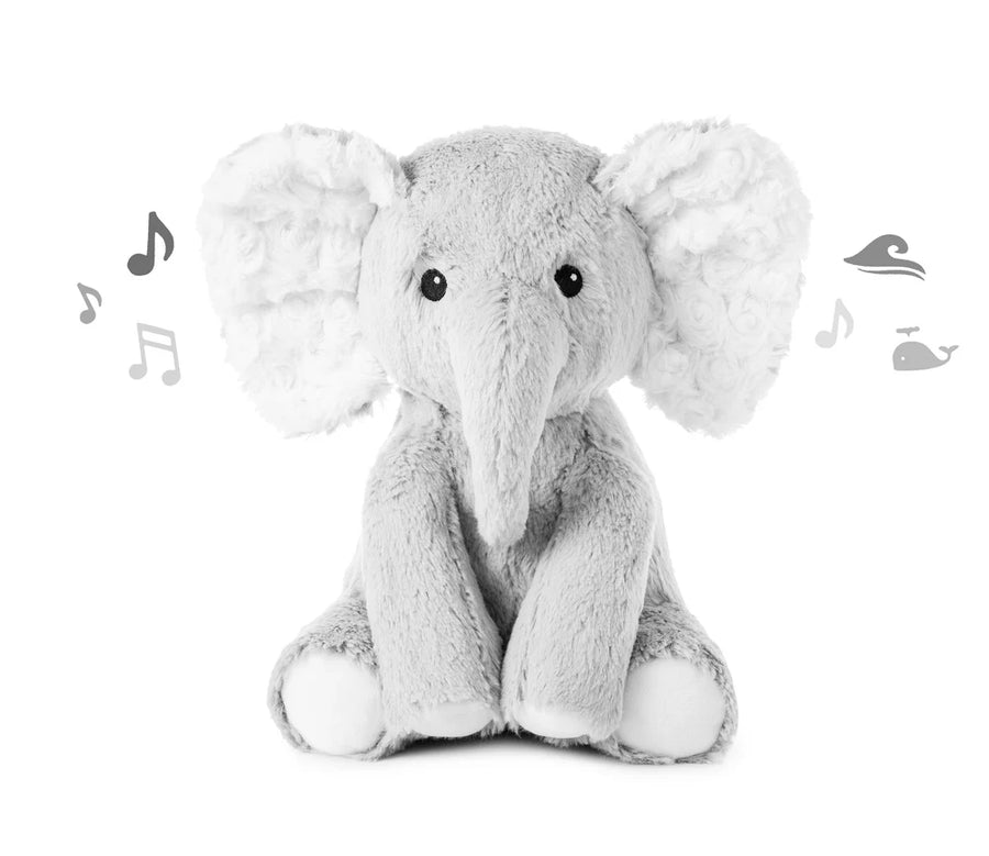 Inside this sweet Elliot Elephant™ is a secret sleep solution – a sound machine that plays 8 soothing sounds and melodies! With favorites like a mother's heartbeat and Rockabye Baby, these soothing sounds are scientifically proven to help babies and children go to sleep faster.