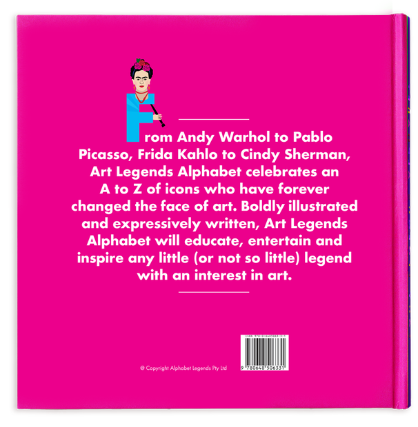 From Andy Warhol to Pablo Picasso, Frida Kahlo to Cindy Sherman, Art Legends Alphabet celebrates an A to Z of icons who have forever changed the face of art. Boldly illustrated and expressively written, Art Legends Alphabet will educate, entertain and inspire any little (or not so little) legend with an interest in art.