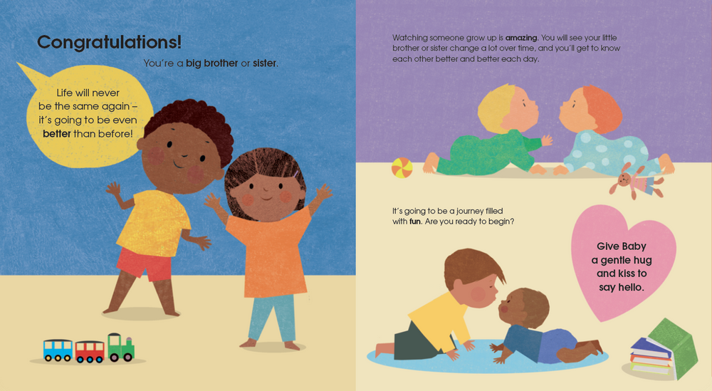 A handy guide for new BIG brothers and sisters who are welcoming a new baby into the family. Covering the first 18 months of baby’s life, this book helps readers bond with the new arrival and explains some key developmental milestones to look out for. Fact-filled guide packed with fun and safe suggestions for how siblings can interact and play with Baby.