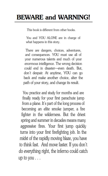 Climate change, drought, accident, and arson can create deadly wildfires that sweep through huge forests on the West Coast of the U.S. You are a trained Smoke Jumper: a brave young firefighter who plunges from an airplane right into the inferno. You must choose wisely to save people, homes, and wilderness from the raging flames!