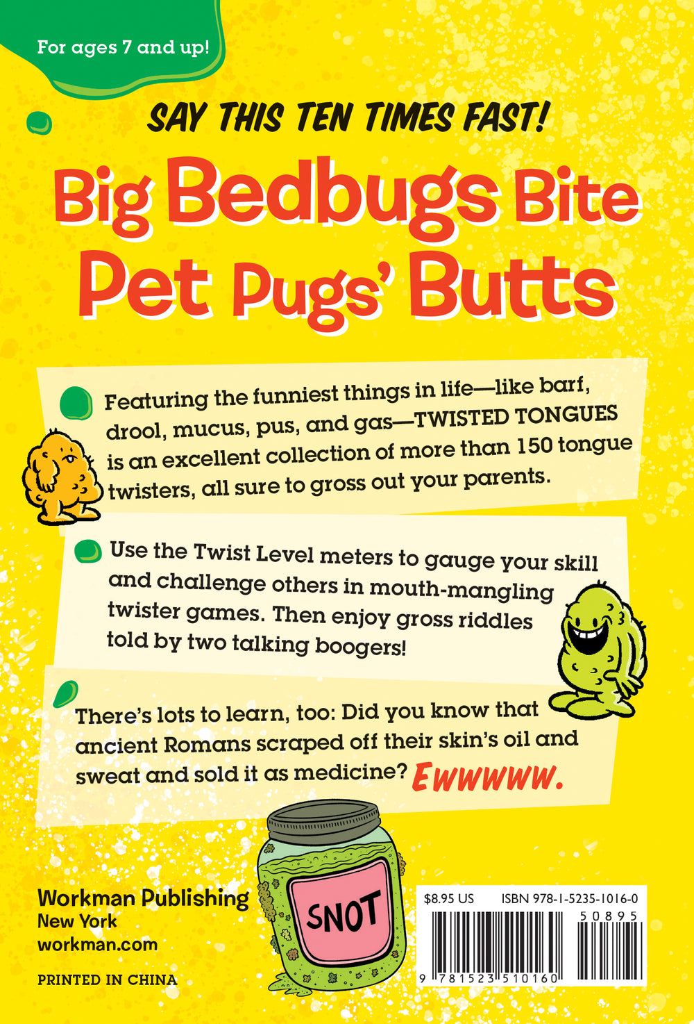 Featuring the funniest things in life––like barf, drool, mucus, pus, and gas––Twisted Tongues is an excellent collection of more than 150 tongue twisters, all sure to gross out your parents.