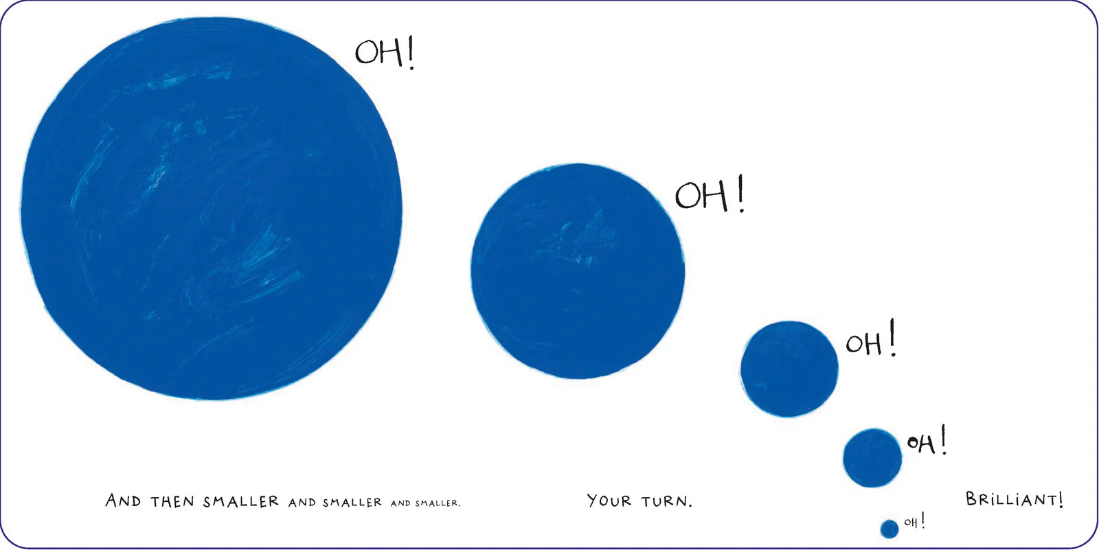 Make some noise! Shout "OH!" Whisper "oh!" Say "Zoop"? Yes! "Zoop!" "Zoop!" "Zoop!" This endlessly entertaining board book magically responds with bursts of color and moving shapes, empowering children by letting their imaginations liberate and direct each page's reaction. In this worthy and exhilarating companion to the trio launched with Press Here—the longest-running picture book on the New York Times bestseller list—Tullet's beloved dots will have readers literally "Ooh"-ing and "Ahh"-ing out loud in a happy collective encore.