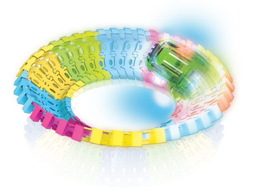 • Includes 11' feet (220 pieces) of neon glow in the dark (5 glow colors) flexible assembly track
