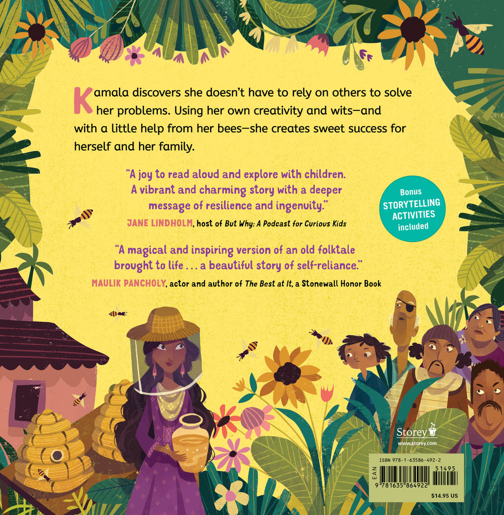 In a village in the countryside lived a woman named Kamala who had the most delicious honey you’ve ever tasted. She collected honey from her hives to sell at the market, but business was slow, and she and her father were struggling to get by. Kamala knew she had to do something, so when she heard that the king’s son was getting married and all the villagers were invited to the party, she got an idea.