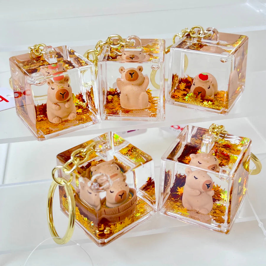 Add some extra personality where ever you go! These capybaras are relaxing in a pile of Fall leaves!