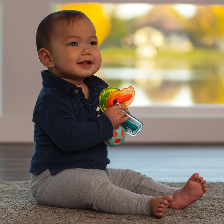 • Gentle rattle sounds develop sound location skills