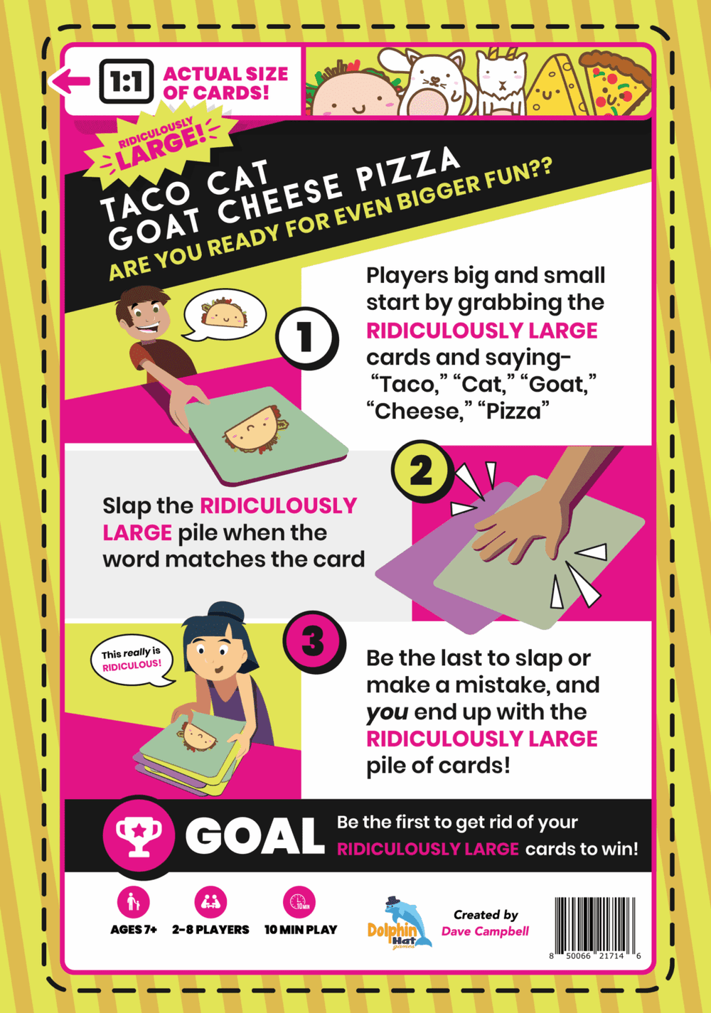 We took the best-selling card game Taco Cat Goat Cheese Pizza and made it RIDICULOUSLY LARGE for even bigger fun!