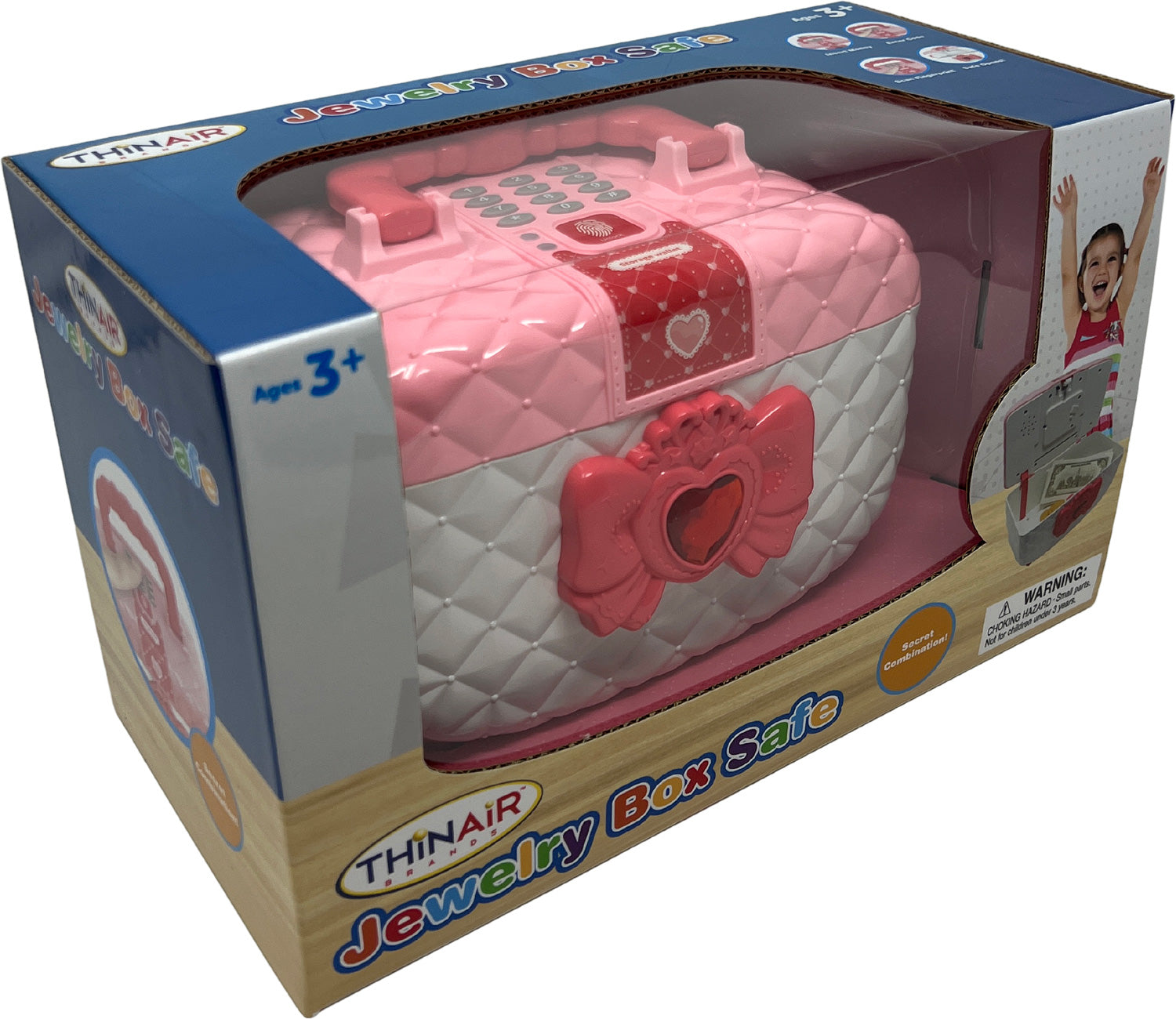 This cute pink safe teaches siblings to respect others' privacy. Requires a secret code and "fingerprint" release!