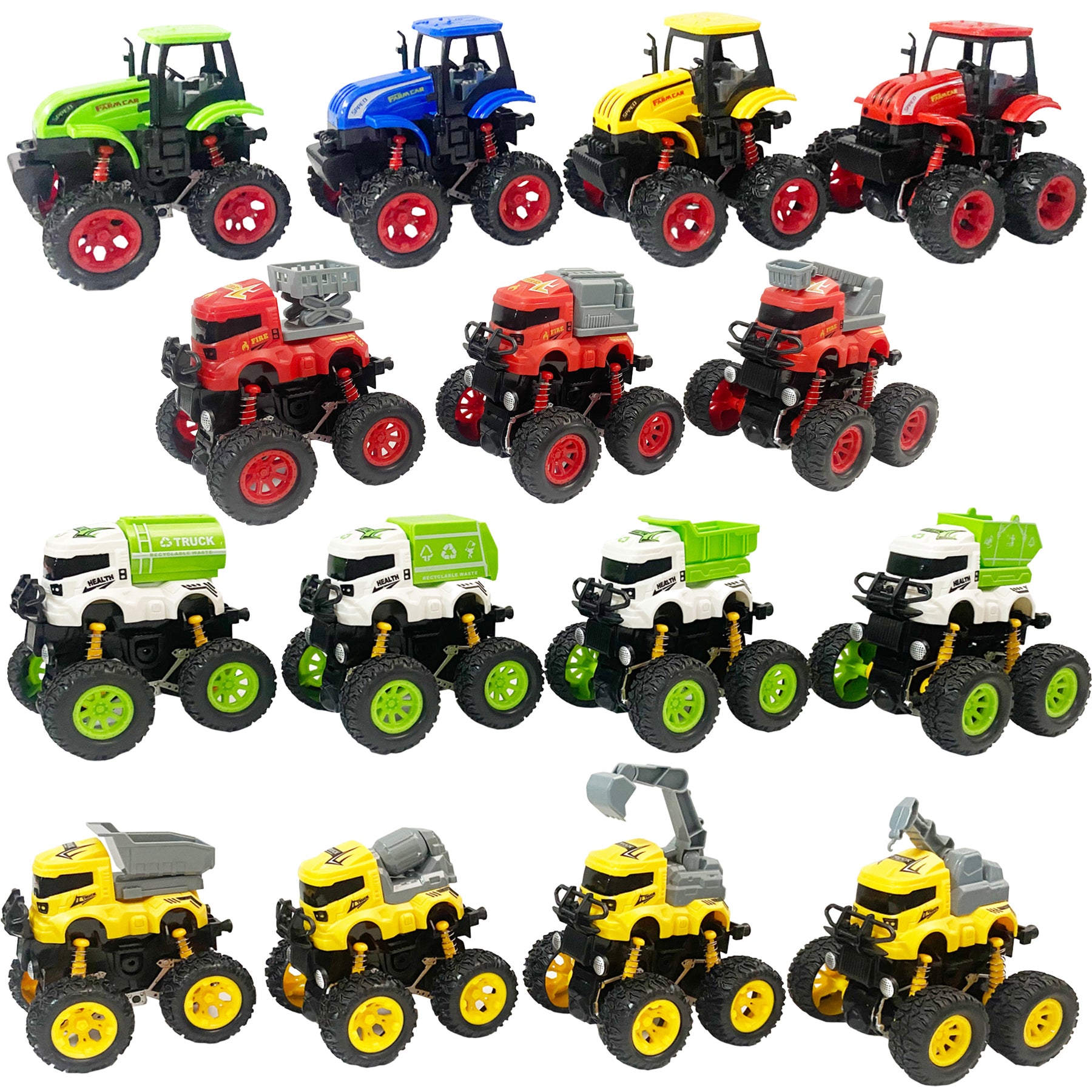 Green Recycling Truck Red Firetruck Yellow Construction Truck Tractor