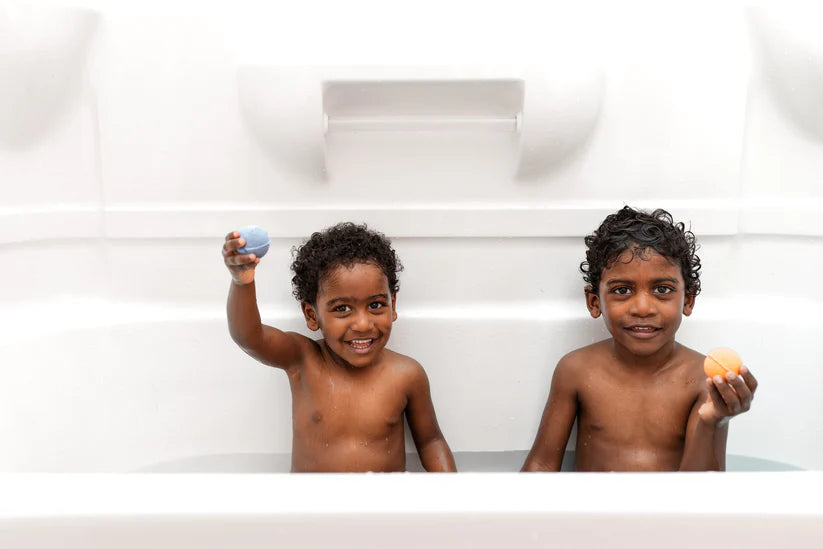 2) Watch as it fizzes and colors the bath water and your child’s imagination!