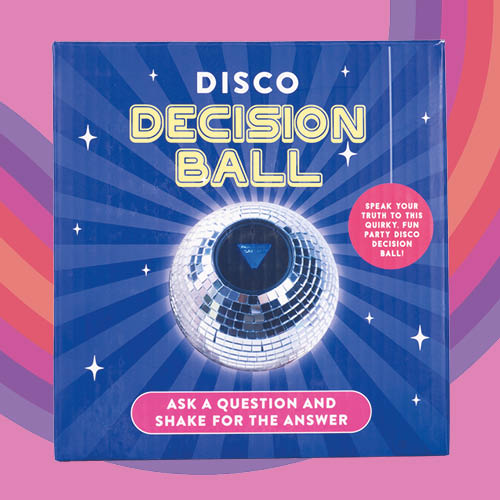 Add some groove to your decision-making with the Disco Decision Ball, a dazzling 4-inch diameter sphere finished with a flashy mirror-ball effect. Just ask a question, give it a shake, and reveal one of 20 entertaining responses – ranging from “very likely to “ask later. Whether you’re feeling indecisive or simply want a touch of disco flair in your space, this novelty ball offers a playful way to get quick answers. Perfect for parties, your desk, or game nights, the Disco Decision Ball ensures that even the simplest decisions become a funky, lighthearted experience.