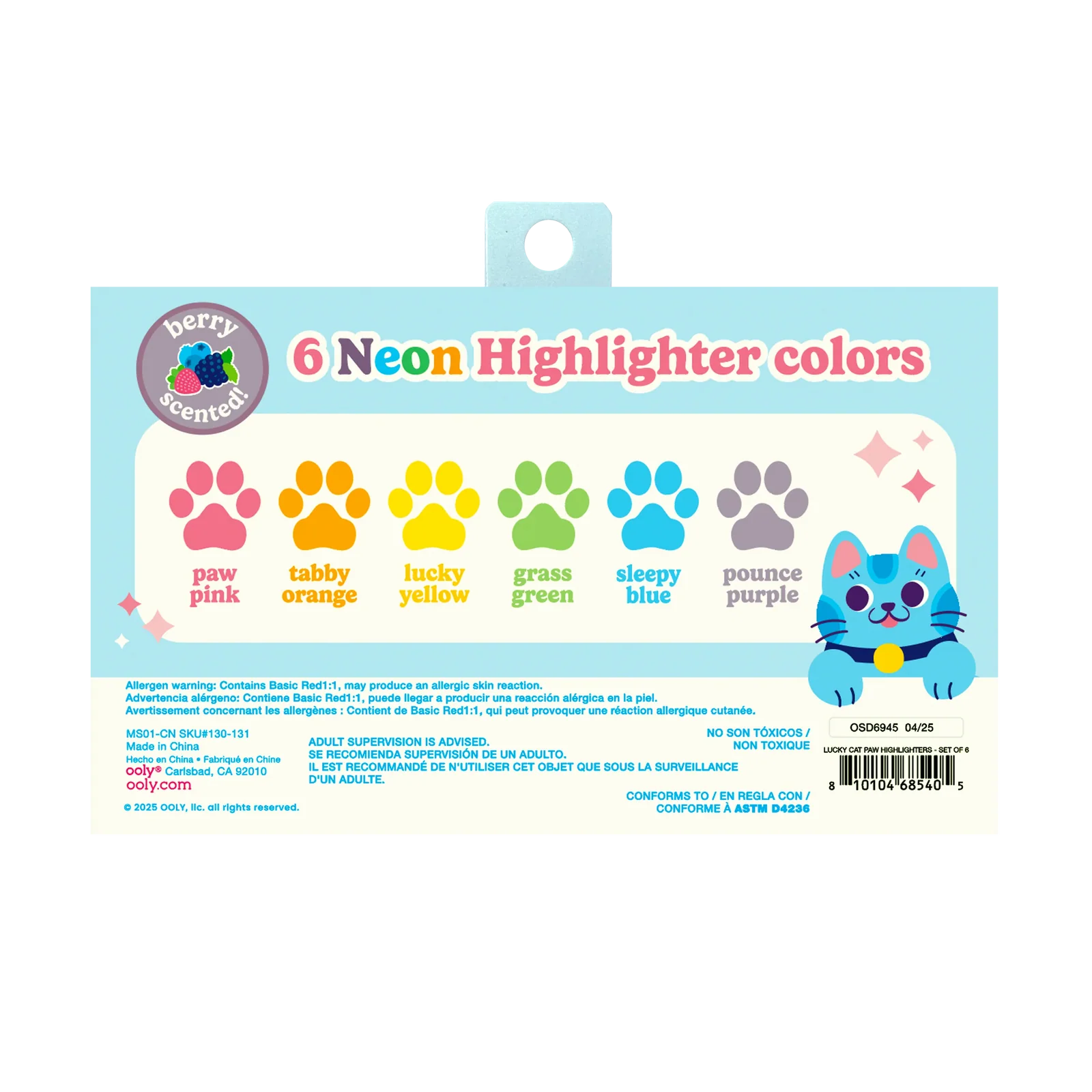• A set of 6 scented mini highlighters in fun cat paw shapes