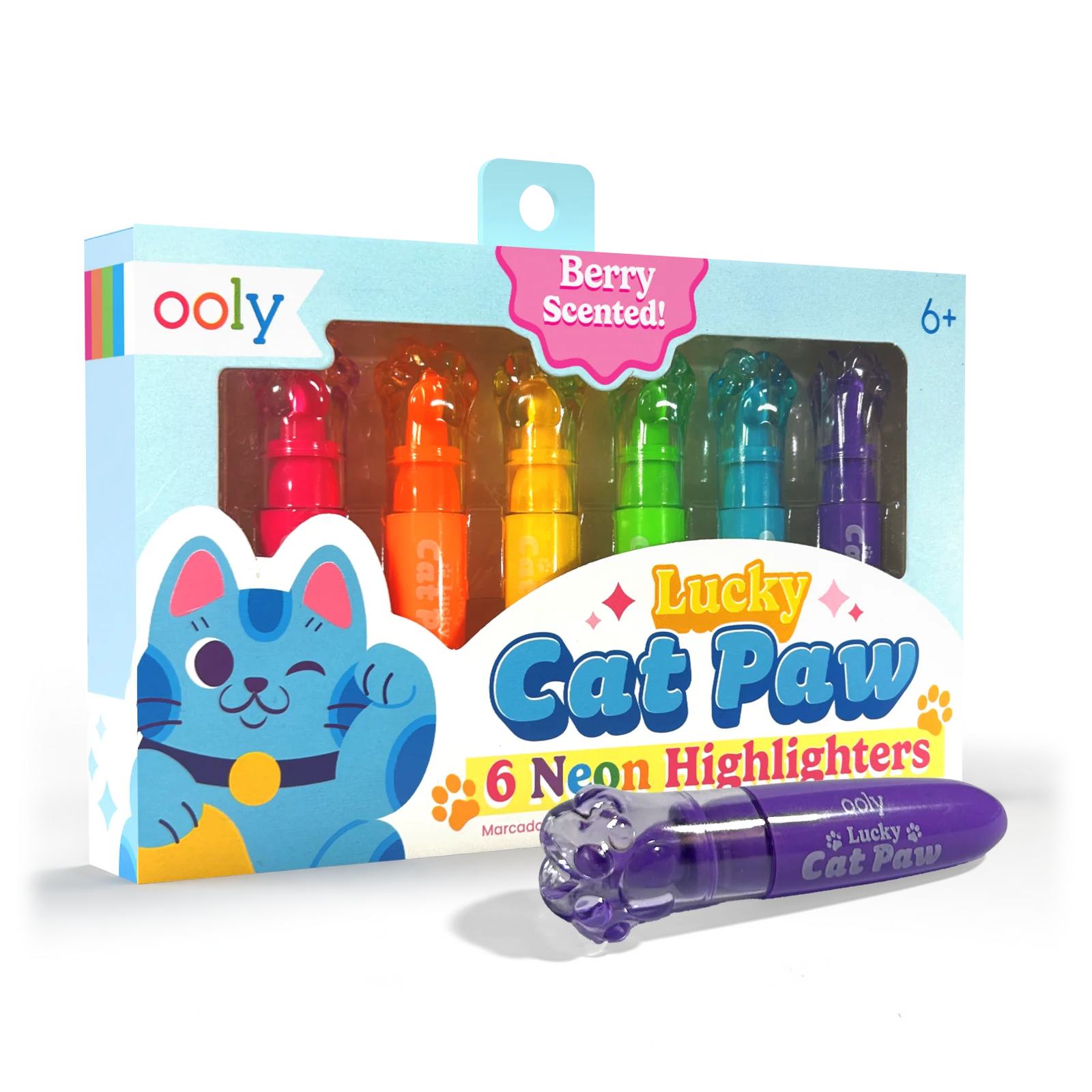 Lucky Cat Paw Scented Neon Highlighters - Set of 6 | OOLY
