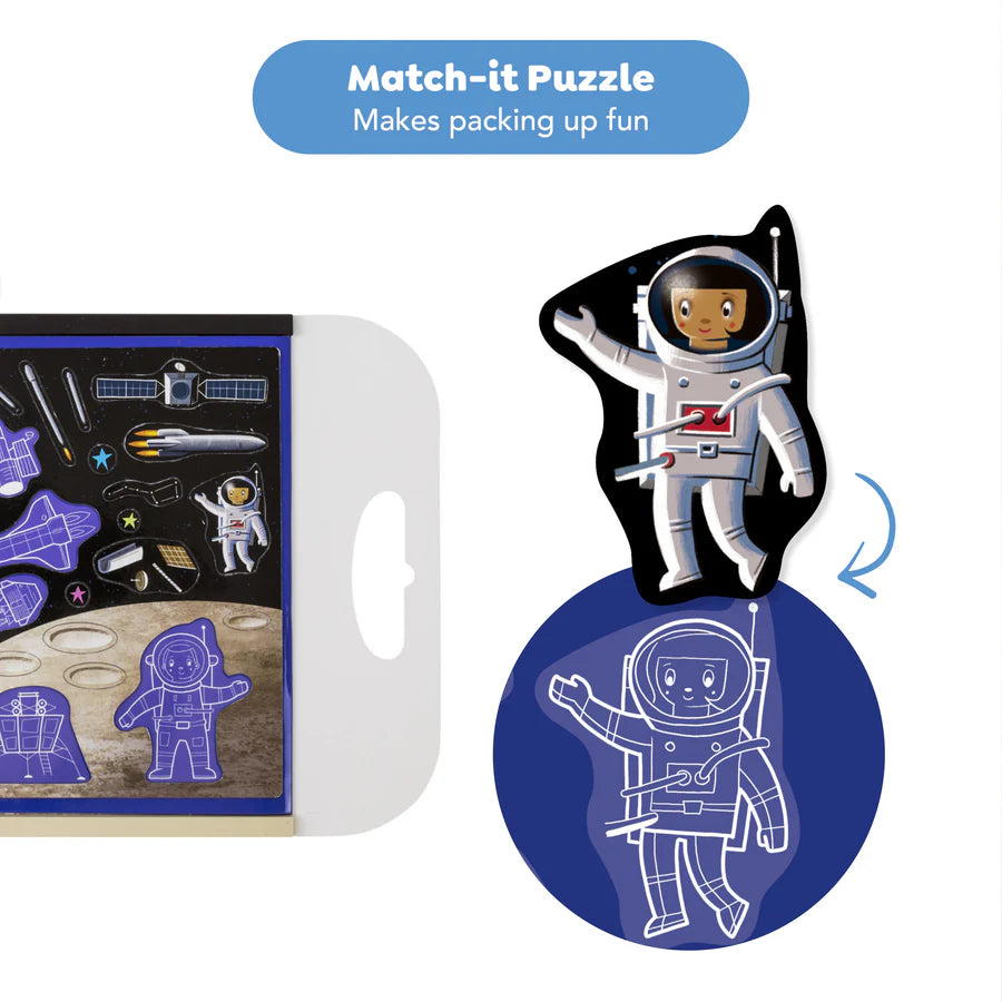 Magna Carry allows kids to create a new scene every time they play. When they're finished, packing up is super fun with the "match the magnet pieces" puzzle on the case!