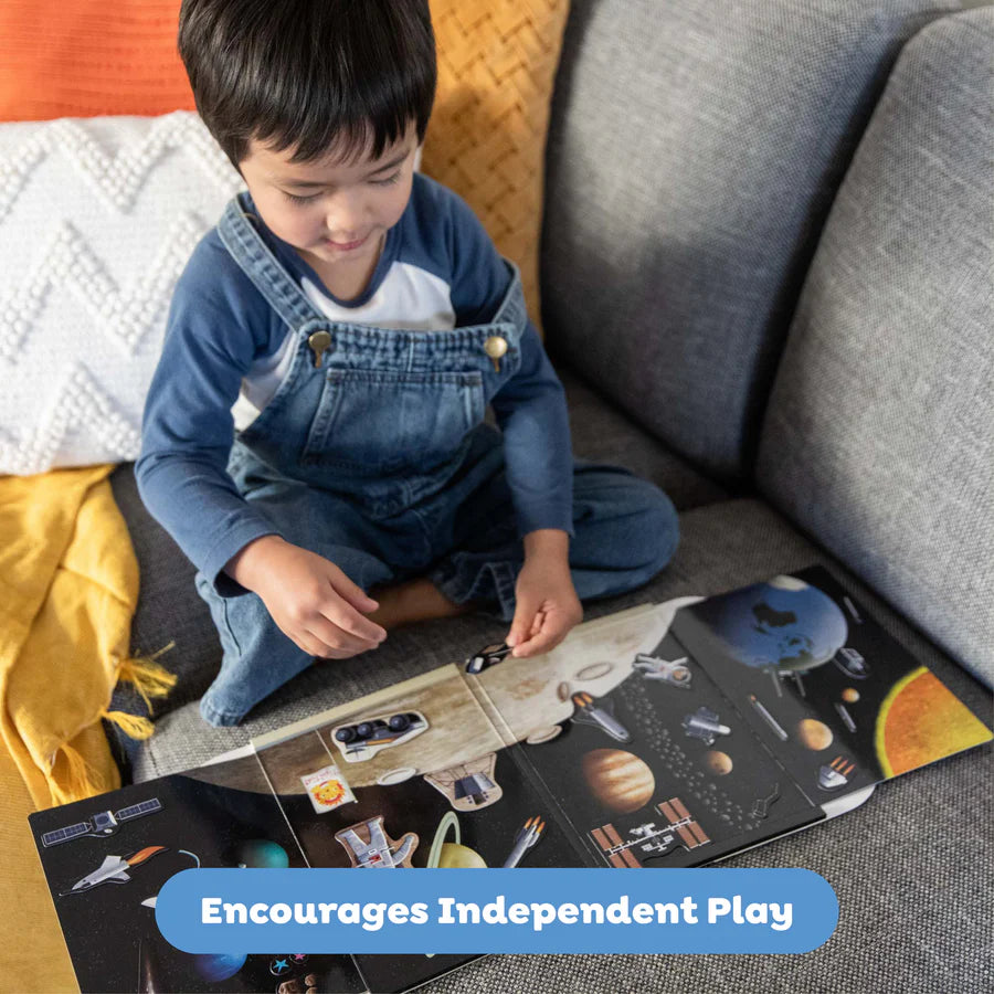 Blast your little astronaut out into the solar system with a fantastically illustrated fold-out, magnetic play scene. Fly rockets and shuttles of all shapes and sizes, plant your flag on the moon, or go on a zero gravity space walk.