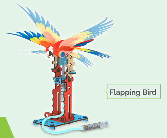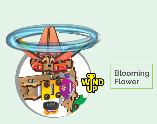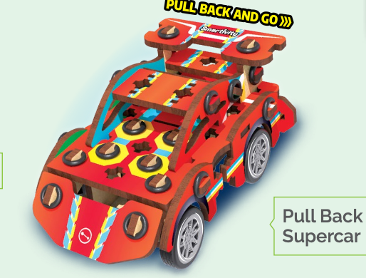 Kids will build fun, interactive toys—Pull Back Supercar, Flapping Bird, Rockin’ Robot, and Blooming Flower!