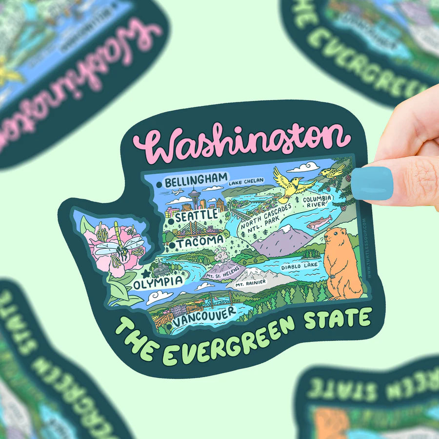 Washington Map Evergreen State Seattle Vinyl Sticker | Turtle's Soup