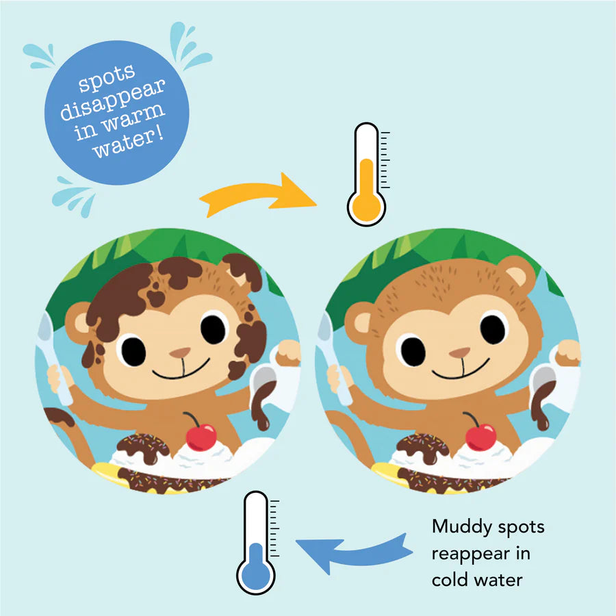 Kids can bathe these charming jungle animals over and over without ever running out of mud! When the water is warm, watch as dirt magically fades away from the animals' fur. But when the water is cold again, get ready to see those muddy spots reappear - just in time for another messy round of bathing fun.