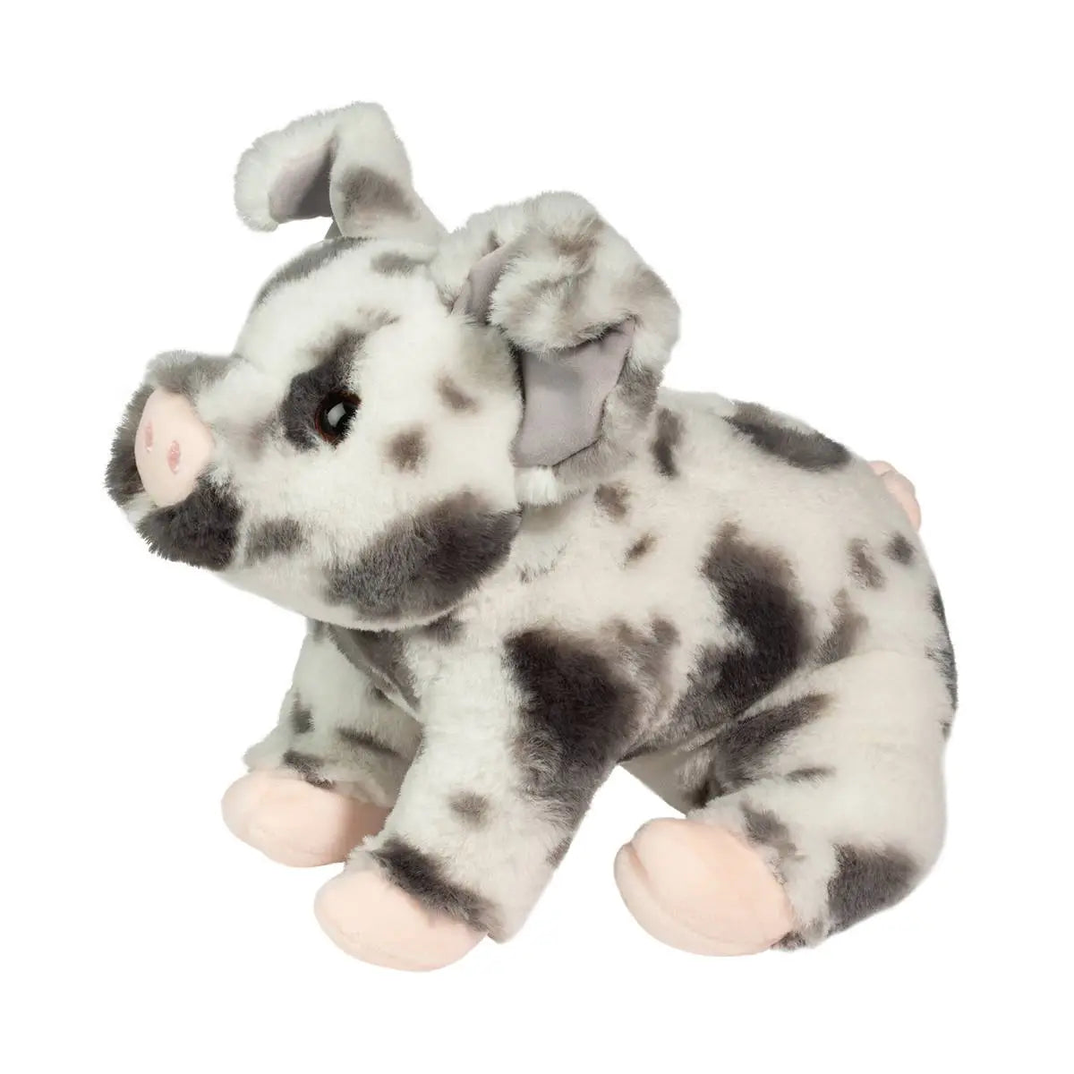 It’s a sunny day down at the farm and Zoinkie the Soft Spotted Pig stuffed animal has found a new mud wallow! What better way to while away the day than in a puddle of mud with a good friend? Our appealing plush piglet features ultra soft materials that boast an attractive gray spotted pattern. His oversized ears and large, amber colored eyes create a lovable appearance, while pink cloven hooves and a squiggly tail add detail and charm. Gently weighted feet and only the silkiest polyester fill ensure Zoinkie to be among the best when it comes to squeezably soft and floppy farm friends. There’s room for more at Zoinkie’s new mud puddle, dive in and spend your day with our friendly Spotted Pig plush!