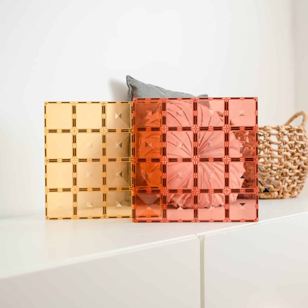 Base Plates are large building plates featuring our signature bevel design with numerous magnet points that will expand the potential of magnetic tile play. Support the creation of taller towers and sturdier castles; inspire symbolic play as you create tents, doll beds and ice-cream stalls; develop fine motor skills by creating mazes and coin drops; unleash imaginations through small world play as the Lemon & Peach Base Plates become a sandy beach and coral reef, or corn field and desert landscape. If you can dream it, you can build it!